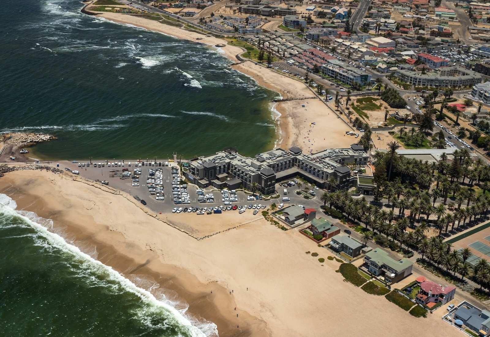 Direkt an der Atlantikküste gelegen, vereint das Strandhotel Swakopmund modernen Komfort mit maritimem Flair. Genieße stilvolle Zimmer, exzellente Gastronomie und spektakuläre Sonnenuntergänge. Ideal für Erholungssuchende, Abenteurer und Genießer – hier trifft namibische Herzlichkeit auf erstklassigen Service. Ein Ort zum Verweilen, Träumen und Wohlfühlen.